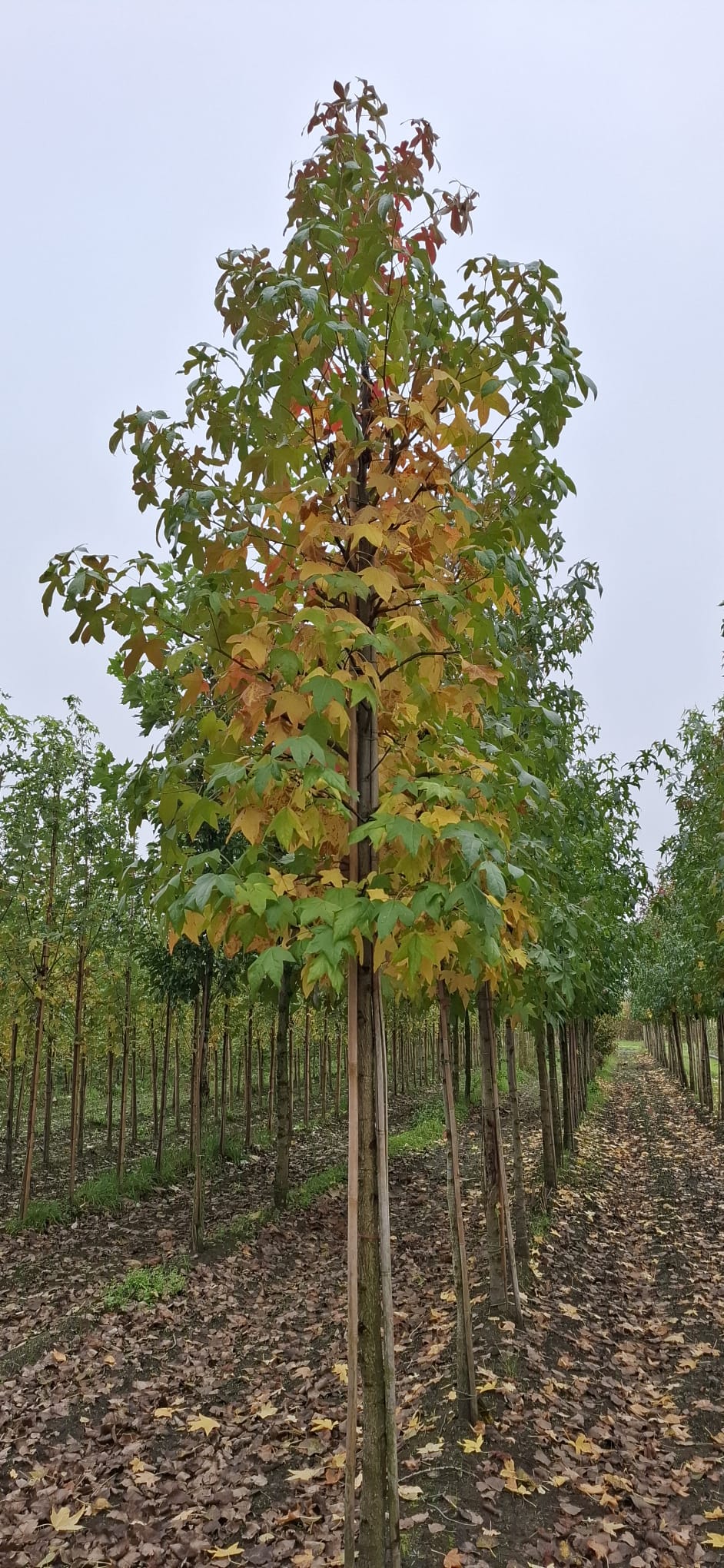 De amberboom is een loofboom met handvormige, diep ingesneden bladeren die in het najaar een spectaculaire herfstkleur ontwikkelen (geel → oranje → rood → paarse tinten). De stam ontwikkelt kurklijsten naarmate hij ouder wordt, wat de boom ook in de winter een sierwaarde geeft. Hij wordt vaak gebruikt als solitair in grotere tuinen of in parken/lanen. Hij groeit het best op vruchtbare, vochthoudende grond, in zon of halfschaduw, en kan (onder gunstige omstandigheden) uiteindelijk tot circa 15-20 m hoog worden in Nederland.